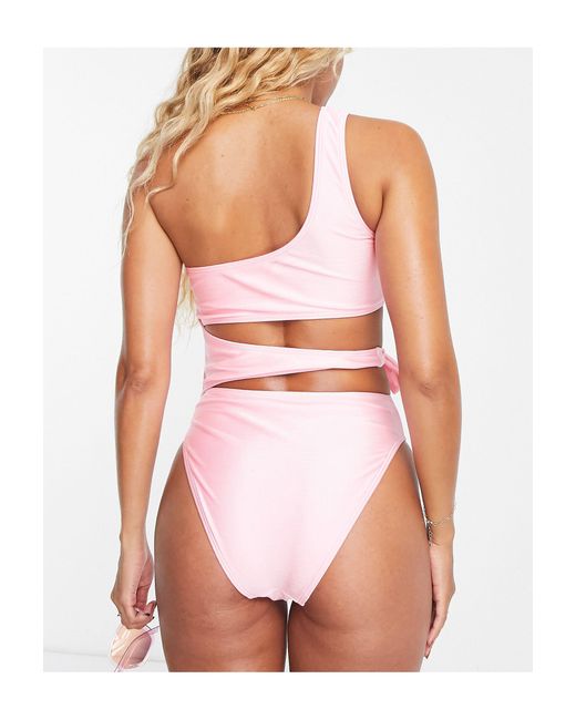 South Beach One Shoulder Swimsuit With Cut Out Detail In Pink Lyst Uk